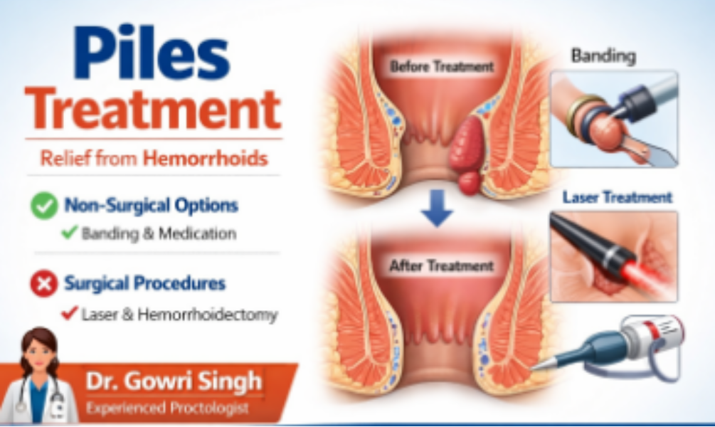 Treatment options include both non-surgical and surgical approaches. For early-stage piles, conservative and non-surgical methods such as medications and banding procedures may be recommended. In more advanced cases, Dr. Gowri Singh specializes in modern surgical techniques, including laser piles surgery and hemorrhoidectomy, which ensure minimal pain, faster recovery, and reduced hospital stay.